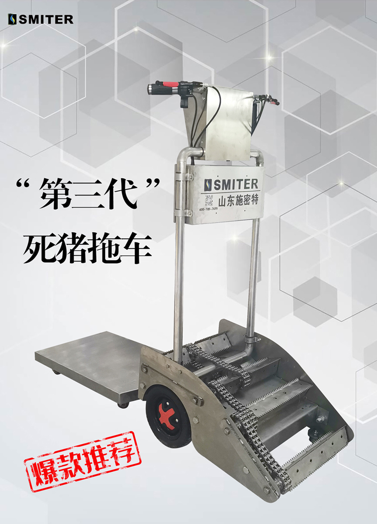 山東施密特電動式第三代死豬拖車是一款避免蠻力,采用機器機械化解決病死豬運輸問題的神奇工具。這款車具備電動齒輥,可實現不用人接觸死豬的方式,將死豬卷動提升到拖車上,同時具備反轉功能,到達目標地點后,自動將死豬卸到地面。超小尺寸設計,可在母豬配懷舍內靈活使用。載重可高達800公斤,母豬、成年豬...運輸無壓力。具備電動行走功能,可靈活前進和后退及轉彎。 我們不斷升級,只為做更好!