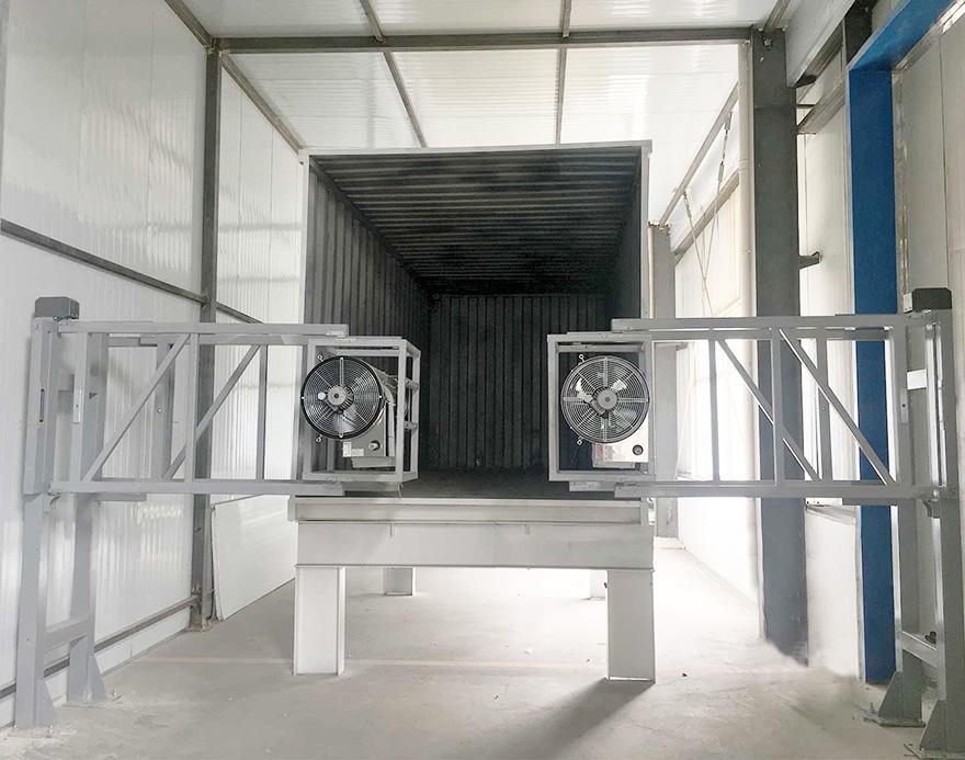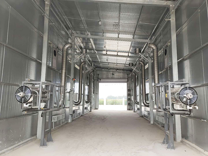 烘干房作為洗消中心的末端工藝流程,也是至關重要的一道關口,是對車輛的二次防控,烘干房設備主要用于運輸豬、飼料等車輛的消毒,消殺附著在車輛上的病毒。
